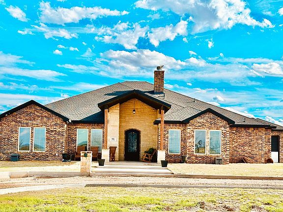 Beautiful Sunsets and Spacious living await! Nestled on 2.5 acres, views for miles, this charming 4-bedroom, 2.5-bathroom home is the epitome of comfort + luxury! Stepping in the front door you will be greeting with soaring ceilings anchored by a beautiful stone fireplace. The gourmet kitchen is a chef's dream come true, featuring a large granite island with room for any family or friend to gather. Amenities include, double side-by-side fridge, gas range, double ovens, and built-in microwave. The secluded master suite offers a luxurious tub, a walk-in shower, plus a large closet w built-ins connected to laundry room. Additional bedrooms are spacious and connected by a Jack-n-Jill bathroom. The back patio is equally impressive. Relax on the lounging pad as you listen to the jets take the days stress away. In the three car garage, bay #3 is ready for your RV or boat. Just outside the back fence is the 48 x 40 insulated shop. Just west of Post, situated between Lubbock & Lake Alan Henry