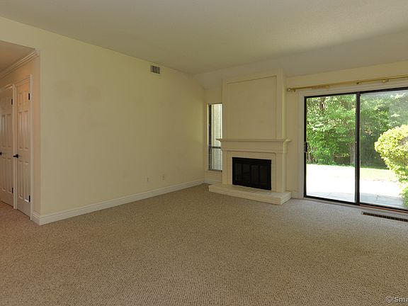 Wood burning fireplaceExtended bluestone patioStylish vanityCharming eat-in areaGranite countersWhite cabinetsSlider to the patio