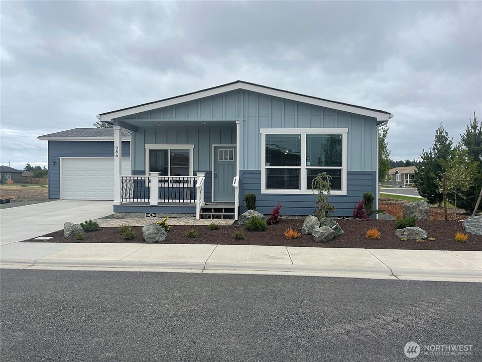 Experience quality living in Lavender Meadows, a private, pet friendly, 55+ community located in beautiful downtown Sequim. Residents enjoy miles of level interior sidewalks, pickle ball courts, horseshoe pits, bocce ball, pocket parks, dog parks, and a clubhouse. Beautifully landscaped with irrigation and a 2-car garage. Floor plan: Duke-limited edition model with 9' flat ceilings in living room, modern painted cabinets, Corian countertops, island, pendant lights & pantry. Open room concept with spacious living room, electric fireplace and tons of natural sunlight.