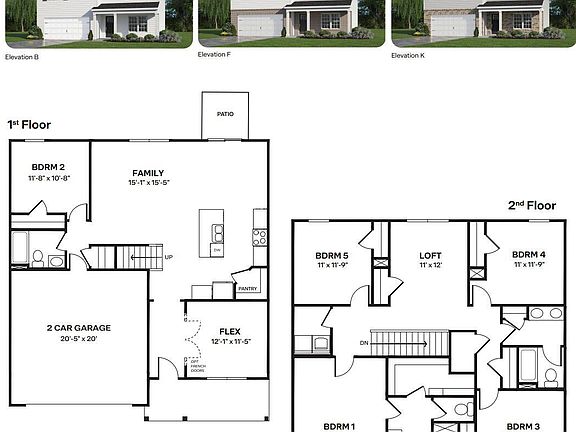 The Hayden is a thoughtful two-story plan featuring 5 bedrooms, 3 full bathrooms, in 2,511 square feet. The main level offers 9' ceilings and features a flex room with French doors adjacent to the foyer, ideal for a formal dining room or home office! The kitchen has quartz counters, WHITE cabinets, an oversized center island for extra seating, a corner pantry, and opens to the dining area and spacious living room. A bedroom with a full bathroom completes the main level. Upstairs, the sprawling primary suite features a bathroom with a generous 5' walk-in shower, private water closet, dual undermount sinks with quartz countertops and a large walk-in closet. There are 3 additional bedrooms, a full guest bathroom, walk-in laundry room, and an open loft space on the second level. Home includes stainless steel Whirlpool appliances and Home Is Connected smart home package!
