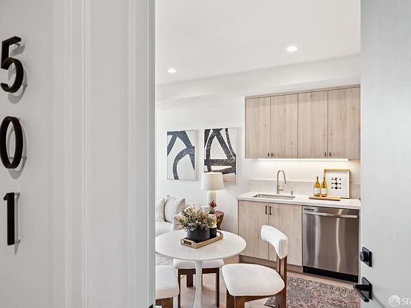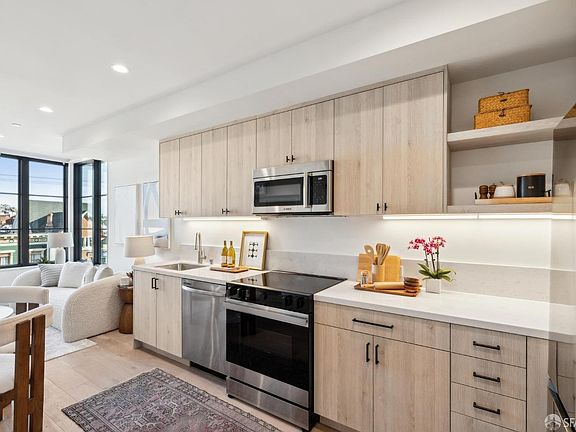 Nestled in the vibrant heart of the Mission & Valencia Corridor, this newly constructed boutique building is a finely tuned balance of function and form, with breathtaking views in every direction. Featuring a selection of one and two bedroom homes, each residence is elegantly choreographed to optimize natural light and quiet comfort. The custom finished interiors are adorned with bespoke cabinetry, undermount lighting, sleek stainless-steel appliances and exquisite quartz countertops with posh backsplash accents. Refined bathrooms offer custom vanities with undermount sinks, tub and shower combinations with tile surrounds, and built-in shelving. These residences are conveniently located near the hottest Valencia Corridor shops and restaurants, and close to BART & public transportation. Every home includes hardwood floors, in-unit laundry hookups, Samsung/Bosch appliance package, heating & air-conditioning & soundproofing between units & common walls. Building offers garage parking (additional expense), bike storage, shared rear garden & elevator access to all levels including a spectacular shared roof deck with 360 degree views. Unit 401 is a prime corner unit with some nice outlooks. Photos are from model unit with same floorplan.