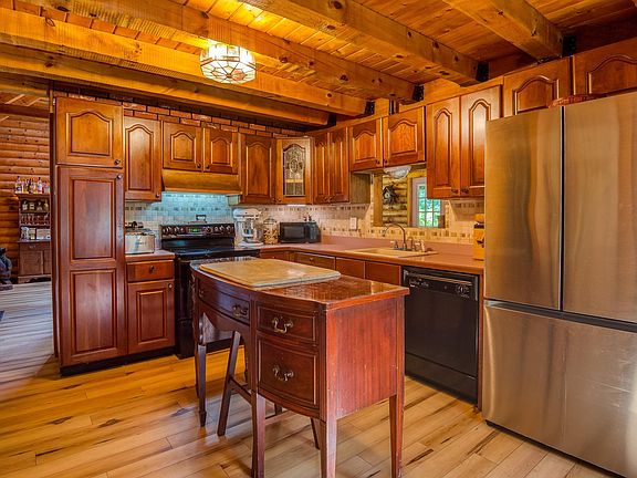 Discover the perfect blend of rustic elegance and privacy in this gorgeous 1988 log home located in Shelburne NH! Set on a 13.5 acre lot that borders state land, this property offers wonderful mountain views and exceptional privacy making it a dream home for those who cherish peace and nature. This exquisite home is also located conveniently nearby Wildcat Mountain, Sunday River, numerous hiking trails, several other outdoor activities, base of Mount Washington and more! On the first level you'll be greeted by a spacious primary suite that is equipped with its own fireplace and full bathroom with a large tub/Jacuzzi setup. The first floor also boasts a beautiful living room that invites plenty of natural light, charmed by cathedral ceilings and the ability to experience terrific views of several mountains in the distance. The home also features a pleasant kitchen area and appealing dining area. The second floor also boasts a wonderful loft area, two additional bedrooms and another full bathroom. As you venture into the neat as a pin full basement, you'll appreciate the amount of storage space and opportunity to utilize it in multiple different ways.