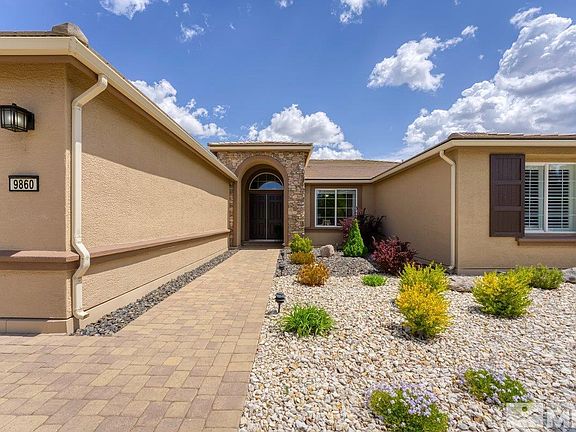 Welcome to this beautiful and immaculate semi-custom home located in Saddle Ridge,a gated community in the heart of Damonte Ranch.So many custom improvements and upgrades everywhere you look in this lovely home including custom millwork and crown moulding, hardwood floors throughout the living areas, newer super cushy carpet in all bedrooms,Exterior painted with Elastomeric paint, the Front yard has been professionally designed with easy care xeriscaping and a lighted paver walkway., The Family Room has a custom corner fireplace and a built in entertainment center w/surround sound speakers. The kitchen features upgraded cabinetry with an extra bank of cabinets and counter that's perfect for a wine or coffee bar, a dining nook and a walk in pantry. The oversized laundry room also has cabinetry for more storage and there's room for a second refrigerator or freezer! All the appliances you see come with the home. Step outside to the amazing backyard and a HUGE covered paver patio with a BBQ stub and extra outlets to make outdoor BBQ and entertaining a breeze. Park your cars in the 34' double deep garage with built in cabinetry and workbench. Just a short walk to enjoy the top tier amenities in this community like the Pool, Hot Tub, Gym, Clubhouse, Tennis, Pickleball, Basketball and a Park. All of this Fun for very reasonable HOA dues. Saddle Ridge is perfectly located minutes from Restaurants, Shopping, Schools, Airport and Hospitals as well as Lake Tahoe, Skiing and Golf in addition to Miles of walking, biking and hiking that are right outside your door. **Floorplan uploaded under D Tab along with SRPD.