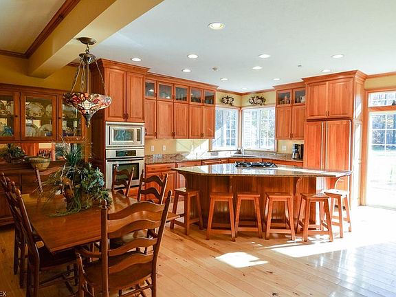 This remarkable property represents the apex of seclusion and privacy in Hambden and only minutes from Chardon and Concord. Walking up to the front door is a spacious porch surveying the two ponds , the dock and the out building. Everything in this home is of the highest quality, and it shows even in the leaded glass front door. The kitchen has a subzero fridge, custom cherry wood cupboards that reach the ceilings, massive granite counter-tops, an island that can seat six and a dining area. Off the kitchen are a sun soaked deck, the mudroom/laundry room, a cavernous pantry and the sunny living room. Enormous picture windows, letting sunlight pour in the living room and a cozy fireplace are the main features of the living room. The first floor master bedroom has an attached exercise room/office that would be perfect for yoga or working out as you overlook the pool and the forest. The master bath has a whirlpool tub, double sinks, deep walk-in closet and a spa-like walk-in shower. Upstairs there's a craft room, large bedrooms, each with their own attached bath. The fully finished lower level boasts: heated floors; its own full sized kitchen, billiards/gaming area, bedroom, office, full bathroom and a vault. On one end stairs lead back up to the three car garage, on the other walkout doors lead you to the in-ground pool and patio areas. Outside is an outbuilding for equipment, a shop or storing toys. There is so much more to this home, come see it for yourself today!