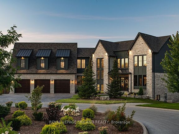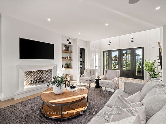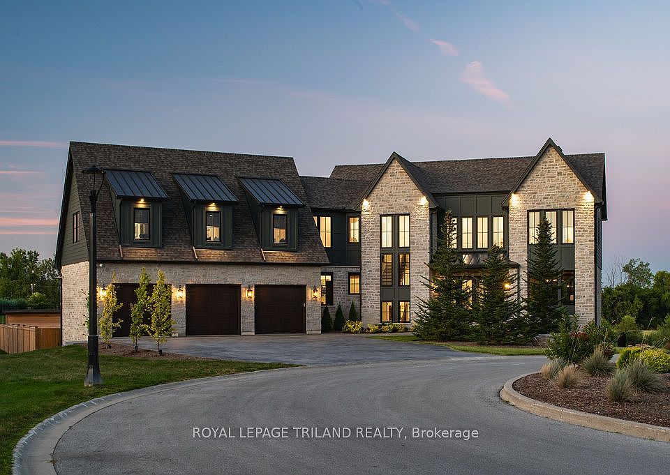 Welcome to Bella Lago Estates, Komoka's most exclusive and sought after neighbourhood. This exceptional property offers a rare opportunity for the discerning buyer to acquire a home defined by aesthetic perfection, timeless design, and a superior lifestyle. With just under 6,000 sq ft of luxurious living space, this residence truly offers something for everyone that's looking for superior design and elegance. A majestic exterior features a classic stone facade, a vast stamped concrete driveway, and handpicked pine trees, ensuring a timeless arrival. Step inside to soaring ceilings and abundant natural light that flows over a beautiful herringbone brick pattern floor. The open concept layout includes a great room and dining space perfect for entertaining. Enjoy seamless indoor/outdoor living with access to a covered deck offering tranquil views of the pond, ideal for your morning coffee or evening retreat. The executive den exudes sophistication with exposed wood beams and a built-in library. The second floor is dedicated to family comfort, featuring four spacious bedrooms, three full bathrooms, a convenient laundry room, and a bonus family room perfect for media or gaming. The fully finished walkout lower level is an entertainer's dream, complete with an additional bedroom, a full bathroom, a large rec room, and a dedicated gym space. The lower level walks out directly to your fully fenced backyard oasis featuring a sparkling pool. The yard is beautifully landscaped with armour stone and low-maintenance trees and shrubs. Access to the oversized heated triple car garage is made easy via slate stone steps from the backyard. Komoka is a fantastic community offering great schools, the YMCA community centre, grocery shopping, walking trails, and quick access to Highway 402.There are fine Restaurants just steps away. Opportunities to purchase within this exclusive enclave of just 29 homes in the private residence are rare, don't miss your chance.