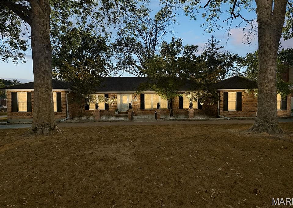 Welcome to the house everyone will be talking about. A pair of bold black lions greet you at the gated front walk, setting the stage for more than 4,200 sf of unforgettable living space. Inside, the main level blends designer polish with everyday comfort, featuring a fully renovated kitchen with custom pulls, a hidden cleaning station with outlet, a built-in breakfast bench, a dry bar with beverage fridge, soft-close cabinetry, crown molding, solid countertops, and Pottery Barn hardware. Light pours through oversized windows into the open living and dining rooms, while the primary suite offers a walk-in closet with custom organizers and sleek stand-up shower in the private bathroom. The four-season sunroom steals the show with walls of windows and sweeping views of the backyard and patios, creating a bright year-round retreat. Downstairs, the walk-out lower level is pure fun and flexibility, ideal for multigenerational living or epic entertaining, with its own private entrance, a full second kitchen with black stainless appliances, a spacious lounge and pool-table areas, a separate wet bar, and a full bath. The setup makes it easy for extended family, guests, or long-term visitors to have their own space. Don't forget the NEW architectural roof & main floor laundry. Set in the sought-after Lindbergh School District, this brick ranch combines character, style, and serious sq footage. From the lion-guarded entrance to the party-ready basement, it's a home that roars.