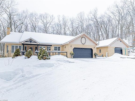 GRAND BEND VALUE ALERT ; EXECUTIVE BUNGALOW ON 9.7 ACRES BACKING ONTO ENDLESS TRAILS & BEACH ACCESS VIA THE PINERY PARK: This extremely well-built 3600 sq. ft. 4 bed/4 bath full brick house w/ a stellar detached & heated shop is nestled into nearly 10 acres of breathtaking oak savannah canopies. Escape the grind & have your worries whisked away by this vast assemblage of natural beauty & wildlife, a veritable ecological wonderland! Between the private 'sunset bluff', with a view of the lake at the right time of day (check out the photos) & being just steps from your front door, to the numerous levels of outdoor living space surrounded by environmental features reminiscent of the Great White North, you will truly experience that 'away from it all' feeling upon arrival at this one of a kind retreat. Plus, this rock solid younger & well-finished custom home with ICF foundation (insulated concrete forms) has been the gracious recipient of boatloads of renos & upgrades over the past 3 to 7 years by the previous & current owners. Notable features include a chef's kitchen w/ granite counters & island, main floor laundry, formal dining room, a stellar new office/library, a full & proper wet bar PLUS a lower level kitchenette area w/ valid potential for an in-law suite/duplex arrangement, enormous principal rooms walking out to patios & decks on both levels, inc.. the full walk-out lower to hot tub, a generous main floor master suite w/ walk-in closet & vast ensuite bath, 3 gas fireplaces, & parking for endless vehicles, RVs, or boats! Grab a cozy drink in the hot tub & then head out to the insulated detached workshop w/ wood stove (4th fireplace) to perfect your latest project. Large families, ATV/snowmobile owners, outdoor enthusiasts, or just buyers looking for PREMIUM PRIVACY - you'll all fall in love the moment you arrive! You CAN have peace & serenity & still be just a quick drive or bike ride up the Rotary bike path to all of Grand Bend's convenient amenities. 10+