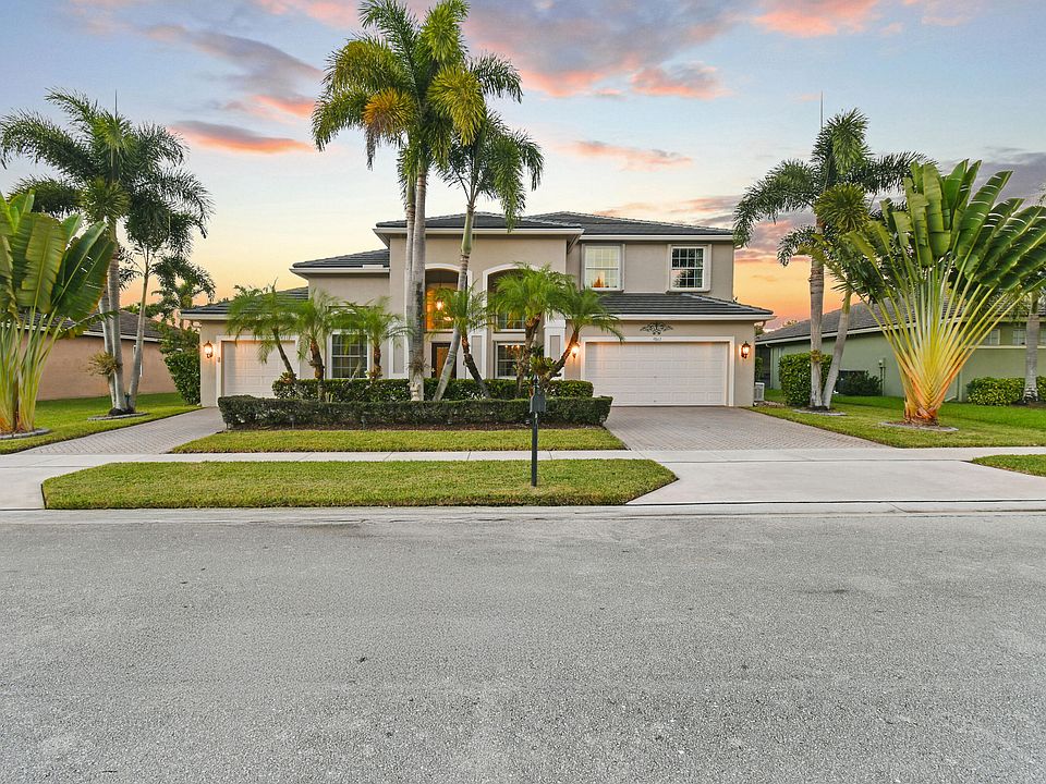 Experience lakefront luxury in this stunning 5BR/3BA home in the gated community of Stonehaven Estates. Step into soaring ceilings & light-filled open living spaces with a first-floor primary suite plus an additional guest room or office downstairs. Gourmet kitchen features 42'' cabinetry, granite countertops, newer stainless appliances & wet bar. Enjoy lake & garden views from multiple living areas or outdoors on the screened patio. All impeccably maintained! Community amenities include: clubhouse, fitness center, pool & tennis/pickleball courts. Low HOA fees cover cable, internet & security. Zoned to A-rated schools & minutes to PBI Airport or upscale shopping, dining, golf & equestrian venues. Schedule your private showing today & discover the Stonehaven Estates lifestyle.