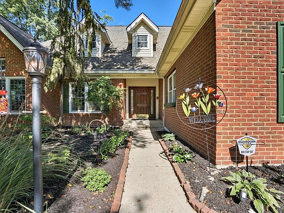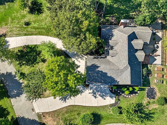 Gorgeous custom-built brick home on private cul-de-sac adjacent to Pebble Creek Golf Course! One level living with option for 1st and 2nd floor suites. Expansive floorplan highlighted by vaulted great room with beamed ceiling and stone fireplace, open to dining, kitchen and four season sunroom, with walkout to large paver patio. Plenty of room for the chef in this kitchen with a huge island, gas range and double oven! Three spacious bedrooms, three full and one half baths, first floor office, second floor loft, and finished lower level with bar and pool/ping pong table that stay with the home! Pop across the street to Pebble Creek for a round of golf or refreshments with friends. Conveniently located within minutes of shopping, dining and highway.