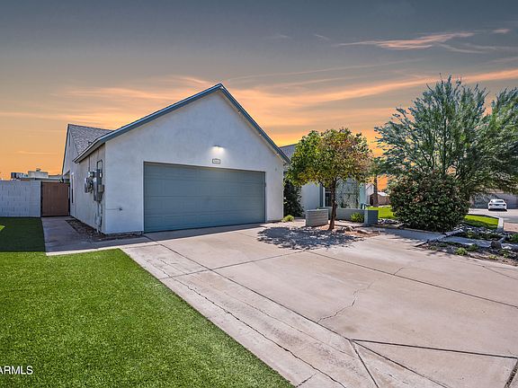 This charming single-level home features 3 bedrooms, 2 bathrooms, and a spacious great room with vaulted ceilings, a cozy fireplace, like new tile throughout, and Casablanca ceiling fans. The large eat-in kitchen offers abundant natural wood cabinetry, built-in shelving, and opens to the covered patio and sparkling PebbleTec pool. The primary suite overlooks the backyard and includes a garden tub, double sinks, and Jacuzzi bath. Recent updates include a 2023 roof, owned solar, new windows, doors, and garage door plus updated kitchen cabinets and countertops. Outdoors, enjoy beautiful low maintenance landscaping, with artificial grass, a raised gazebo/picnic area, and a refreshing pool with a new pump. Don't miss this one. It won't last long!