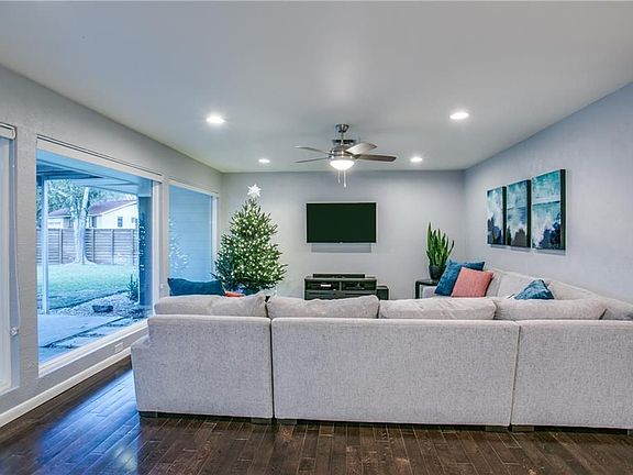 Modern updated home in Lake Ridge Estates sits on an oversized 93 x 130, fully fenced in corner lot with mature trees. Large family room with entire wall of floor to ceiling windows gives access to expansive backyard with covered patio perfect for entertaining. This home features 3 bedrooms with an additional room perfect for an office or playroom. Ample closet space throughout home. Kitchen features pantry and hidden storage drawers behind cabinets. Oversized mudroom with utility sink between garage and kitchen with another access point to backyard. Don't miss this opportunity to live so close to White Rock Lake and Flag Pole Hill with easy access to 75!