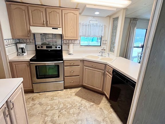 This charming residence is located in the age-qualified golf community of Lake Fairways Country Club. Priced attractively, this home offers excellent potential to make it your own. The open-concept layout features a spacious living and dining area with a built-in hutch for added storage. The kitchen provides ample cabinetry and workspace, while a walk-in closet off the kitchen offers additional storage or the option to convert it into a laundry area. The primary suite includes a comfortable bedroom and a bathroom with an easy-access shower stall. The guest bedroom and bathroom are perfect for hosting visitors. Enjoy Florida living in the large screened-in lanai, featuring newer screening throughout. The home also includes a storage shed with a washer and dryer, and comes complete with a golf cart. A spacious carport and extended driveway provide ample parking for multiple vehicles. Residents of Lake Fairways enjoy resort-style amenities, including a beautiful clubhouse, 18-hole golf course, pool, jacuzzi, and a full calendar of social activities. This age 40+ gated community offers a warm and welcoming atmosphere. Contact Dee Ann for a personal showing or FaceTime tour. This home is located on a leased lot with a monthly lot rent of $992.00 monthly.