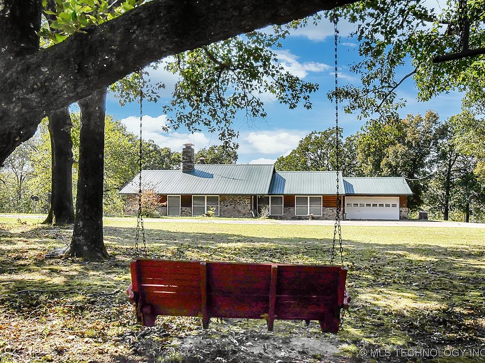 Welcome to 98686 S 4540 Rd, a charming property that offers a unique blend of rustic charm and modern convenience. This stunning house is situated on a sprawling 240-acre parcel, providing ample space for privacy, relaxation, and outdoor activities. As you approach the property, you'll be captivated by the picturesque stone/log exterior and the inviting presence it exudes. The metal roof adds a touch of durability and style, ensuring that this home will stand the test of time. Step inside the home and be greeted by an expansive living area adorned with three cozy fireplaces and vaulted ceilings. These fireplaces not only provide warmth during colder months but also add character and a sense of tranquility to the space. The house boasts three spacious bedrooms, each offering comfort and privacy. With plenty of natural light filtering through the windows, these rooms provide a serene atmosphere for restful nights. Additionally, there are two bathrooms, ensuring that everyone has their own personal space. One of the standout features of this property is its two shops. Whether you're a hobbyist looking for a dedicated workspace or need extra storage for your belongings, these shops offer endless possibilities. Embrace your creative side in one shop while utilizing the other to keep your vehicles or equipment protected from the elements. Nature enthusiasts will fall in love with this property's abundant natural wonders. Vian Creek gracefully weaves through the land. Immerse yourself in the great outdoors by exploring the vast landscape or engaging in recreational activities like hunting. Conveniently located just minutes away from Vian, this property offers the perfect balance between seclusion and accessibility. Lake Tenkiller, Illinois River, and Sequoyah Wildlife Refuge are just a short drive away. Enjoy the best of both worlds as you relish in the peace and quiet of country living while still being within reach of modern conveniences! Fiber optic internet available!