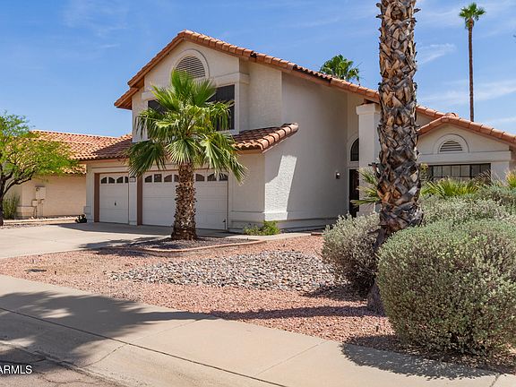 Awesome South Tempe community. Upscale contemporary on large, private interior lot . Popular plan with both living and family rooms plus 5 bedroom 3 bath. Kitchen open to Family with pool views. Master bedroom has dual vanity, separate tub and shower plus sky-lite, secret and walk-in closets! Lots of wood and tile flooring! Private, low maintenance backyard and big covered patio and sparkling Pebbletech pool! Built-in backyard BBQ, & beehive fireplace too. Plantation shutters, fireplace in family room, French doors, built-in china cabinet & more!  This home has really great storage throughout too! Here's your chance for a great, Tempe home, close to Freeways, great Kyrene schools and shopping!