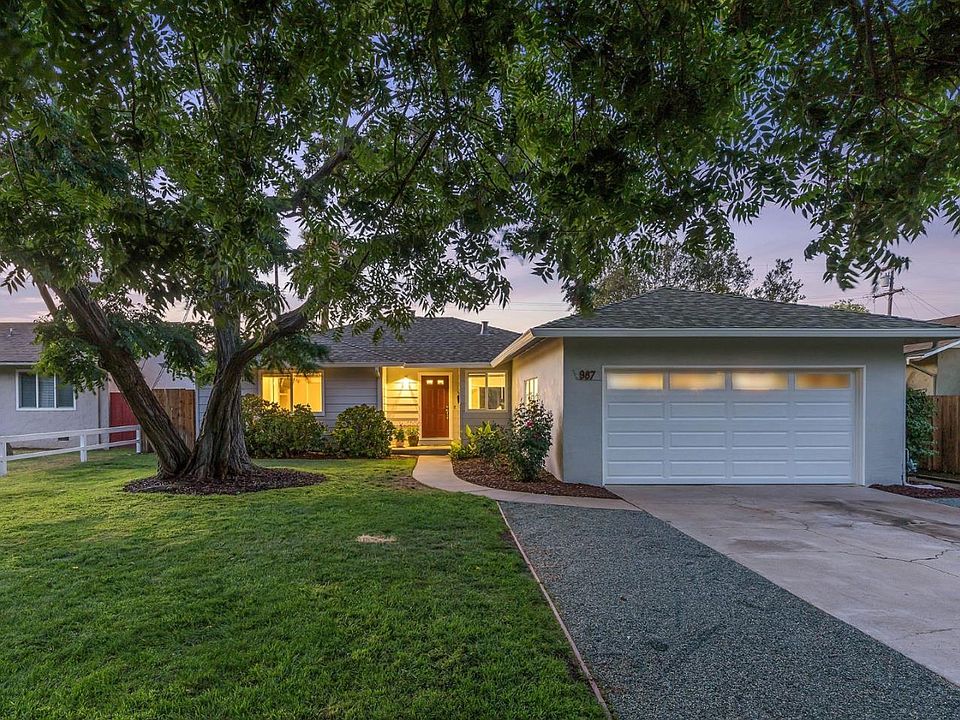 TOP SCHOOLS - LAURELWOOD ELEMENTARY (API 946) / MARIAN A. PETERSON MIDDLE (API 885). LOCATED ACROSS FROM THE NEW APPLE PARK CAMPUS, this home is within walking distance to shopping, dining, and parks. Close to 85, 101, and 280, this Birdland neighborhood is also easily accessible to downtown SJ and Airport. Features incl. energy and cost-efficient amenities, new flooring, dual pane windows, HVAC unit, steel garage door, attic exhaust fan, attic insulation, LED lighting, and garden irrigation. The new OSB radiant barrier-sheathing roof will reflect up to 97% of the suns radiant heat keeping the attic 30 degrees cooler. Also features an Andersen dual pane French door providing a seamless flow to amazing outdoor entertaining spaces with included BBQ grills, fire-pit, and outdoor furniture and picturesque garden setting wrapped in lush foliage. Eat-in kitchen features granite slab counters, newly sanded & painted cabinetry, stainless appliances, garden window and built-in smart TV.