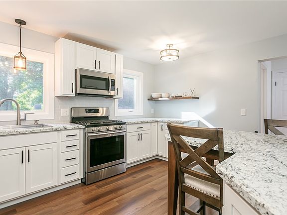 WOW! Stunning cape in a prime location! Get ready to fall in love with this beautiful 3 bedroom, 2 full bath cape with one of the best master suites you'll find in this price range. A full bath on each floor allows for this to offer 1 floor living if needed as well. Fully updated kitchen with white cabinets, stainless appliances, subway tile backsplash and built in breakfast bar. Gorgeous master suite upstairs newly remodeled with all new floors, new drywall, all new led lights, huge master closet and gorgeous bathroom. Updated lower level bath with brand new shower surround! BRAND NEW tear off roof only 2 months old, freshly painted exterior, some new vinyl windows, Furnace is 10 years old and equipped with a whole house generator. HUGE mudroom/breeze way between the garage and the house that also leads to the fully fenced in backyard. Located right around the corner from Holt Rd Wegmans and Holt Rd Plaza, and only 2 minutes from the village of Webster. Delayed negotiations until 10/10/23 @ 12pm.