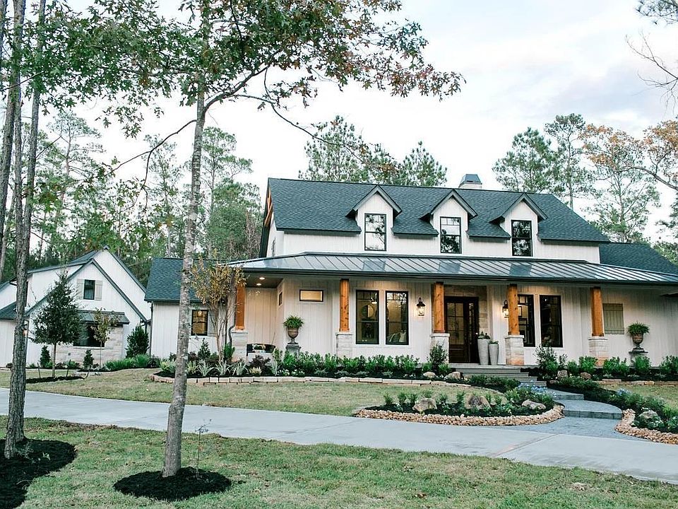 Historic stone wallsSingle-story designRolling wooded terrainFrontage along clear creekExpansive bath designCovered outdoor living spaces