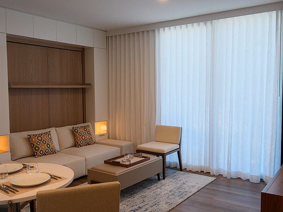 Enjoy resort-style amenities including an infinity pool, private cabanas, BBQ areas, and five stylish party rooms on the 8th floor. Stay active with a state-of-the-art fitness center, yoga/pilates room, and unwind in the sky lounge (co-work areas) on the penthouse level (42nd floor) offering panoramic sunset and ocean views.
