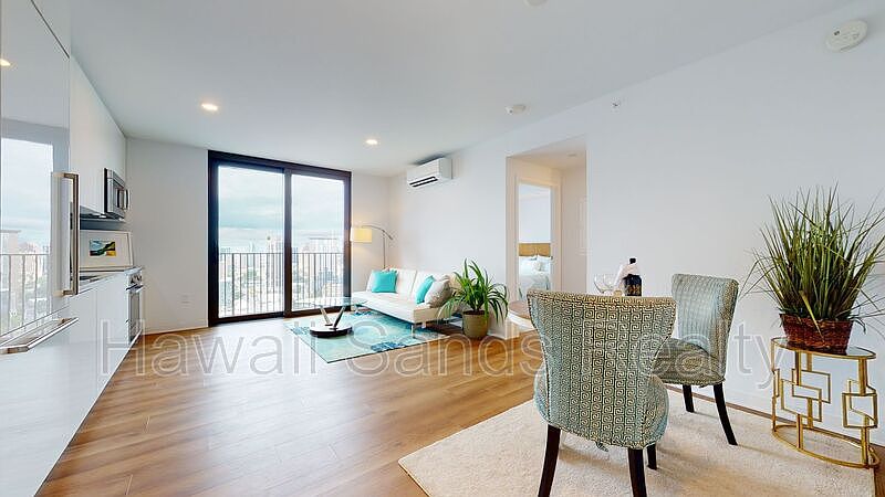 This condo has it ALL! Location, views, first class amenities, and SO much more. Step into Ward Village's newest luxury condominium residences at the A'ali'i tower. This unit features Bosch kitchen appliances (including dishwasher), quartz countertops, bright lacquer cabinetry, high-end fixtures, and an in-unit washer/dryer. Take in the ocean views from the main living area, bedroom, and lanai.