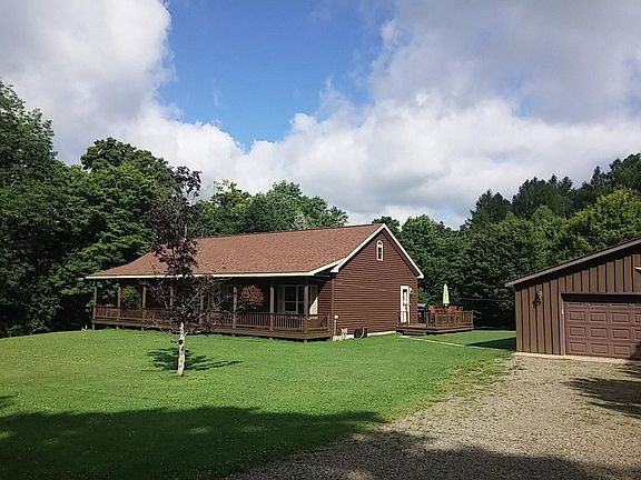 Fantastic country retreat gives the feeling of vacation all year long. Located on town maintained country road gives just enough privacy. This New 2012 Ritz Craft modular home has open floor plan with one floor living. Kitchen features custom Maple cabinets, pantry and breakfast bar opening to dining and livingroom. Master En Suite has spacious Master, walk in closet, bath with soaking tub and seperate shower. Opposite end of home has 2 guest bedrooms with large closets. 2nd full bath conveniently located here. A laundry area and entry is located off the kitchen with additional shelving for storage. Home has full basement with insulated Superior Foundation System giving you the ability to sheet rock giving additional living space. The home has 2 heat sources. Propane forced air furnace plus rice/coal furnace for additional warmth and cost savings. Home has 200 amp service with power going to detached garge plus a generator hook up for emergency power. Electric service is provided by REA giving more economical electric. Lot is lined by mature landscape plus attractve flower beds and plantings. Full covered front porch plus open wrap deck on rear gives nice privacy for the included Hot Tub. Oversized 2 car garage has drive thru capability plus 8' carport behind for all the toys. Large Shed and RV hook ups adds to the conveniences on this lot. Home is close to local snowmobile/ATV trails in the area. In addition the owner is a member of a hunting club which has access to 600+ proven acres of deer hunting that is seeking new members!!! Qualified buyers only please