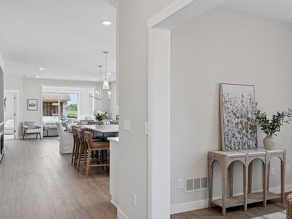 Welcome to the NEW Francois Fields community in New Richmond, where low-maintenance living meets elevated design. This custom-built Derrick 2BD/2BA twin home showcases the exceptional craftsmanship and thoughtful finishes you expect from one of the area’s premier builders. Featuring the brand-new St. Johns slab-on-grade floor plan, this home delivers modern comfort and timeless style. A light-filled open-concept living room, anchored by an elegant Allusion electric fireplace is ideal for relaxing or entertaining. The custom enameled kitchen cabinets reach to the ceiling and are complemented by quartz countertops, a tile backsplash, under-cabinet lighting, and soft-close drawers. Stainless steel appliances and a spacious island make this kitchen both functional and beautiful. Enjoy natural light year-round in the bright and airy sunroom, perfect for morning coffee or quiet reading. The primary suite offers a private retreat with a dual-sink vanity, walk-in shower, and large walk-in closet. A flexible front room serves perfectly as a home office or sitting room, while the second bedroom, full guest bath, and laundry room complete the home. The attached two-car garage provides ample storage. With association-maintained lawn care and snow removal, you’ll spend less time on chores and more time enjoying life. See supplements for photos, tour, and more. Schedule your private tour today and experience easy, refined living in Francois Fields.