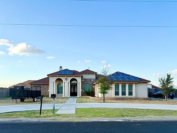 Beautiful custom home with curb appeal and spacious open layout. Inside features high ceilings, crown molding, arched hallways, and a large living area with built-ins and fireplace. The Kitchen offers custom wood cabinetry, granite countertops, stainless appliances, and bar seating. The Primary suite features a spa-style bathroom with soaking tub and walk-in shower. Plenty of driveway/parking space. Solar Panels will be paid off and removed.