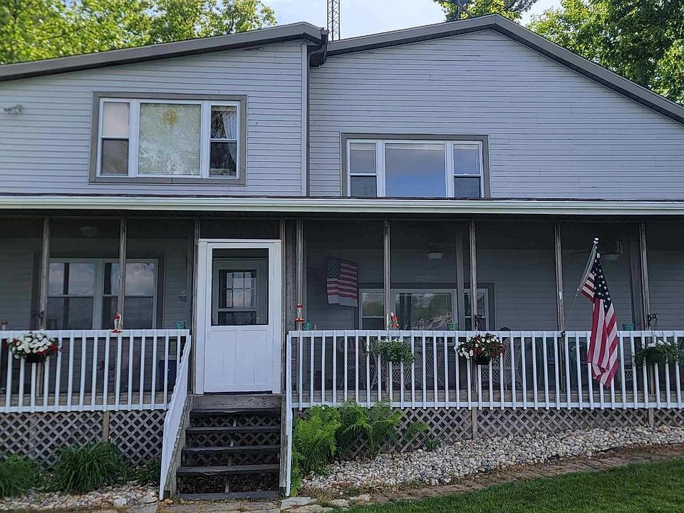 Discover this charming two-story, 3-bedroom, 2-bath turnkey home on the desirable Eagle Island of Waldron Lake. With a perfect blend of classic lakeside charm and modern updates, this property offers both comfort and style. Accommodating up to 5 beds and 5 hide-a-beds, it’s ideal for family getaways. The screened-in porch provides a cozy spot to relax and take in the peaceful lake views, sheltered from the elements. Enjoy the expansive double lot with mature trees and an impressive 110 feet of waterfront. This listing also includes a 50' roll-in dock, boat lift, and a 2002 Sylvan Marine Deck Boat, offering everything you need for the perfect lakeside experience.