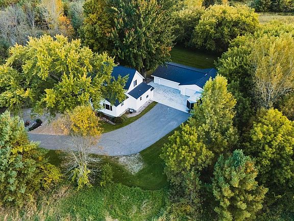 Privacy and seclusion is the only way to describe this magnificently remodeled farm house tucked back in the woods with no neighbors and the only house at the end of a dead end road. This 3 bed 2 full bath house has been meticulously maintained starting with a new blacktop driveway leading up to new concrete in front of the garages and house. New steel roof on the house and garage last year & newer aluminum clad windows. Inside you will find custom oak cabinets with new vinyl plank flooring in the kitchen with that hard to find open concept farm house that flows into the dining and living rooms. Entertain all your guests in the oversized living room with massive windows and gas fireplace. The main floor also contains one full bath remodeled last year, large master bedroom with ensuite including hot tub/jacuzzi & 5x13 walk in closet. Upstairs are two more large bedrooms with closets in both. Garages measure 24x32 and 26x28, both are heated with Lp furnace, have concrete floors with extra storage above and drain on one side. At the front of the house you can enjoy a 8x17.5 covered de