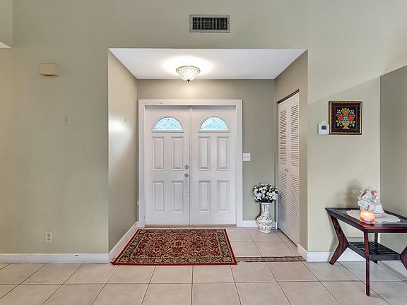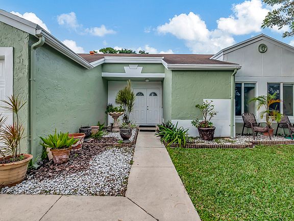 One level immaculate Home! Tile wall to wall...no carpets here! Roof installed new in 2013, now only 10 years old. New AC unit installed July 2023. 2 front bedroom windows are impact. Bedrooms are a large size and screened in patio is huge @ over 500sq ft! with 2 new ceiling fans. Fruit trees including banana, guanabana, soursop and an Avocado tree in back yard Boca Landings has low HOA fees which include Cable and fiber optic Wi-Fi. The community area has an Olympic pool and kiddie pool, tot lot, basketball Raquet ball, pickle ball and tennis all lit for night play! There are streetlights and sidewalks throughout the entire neighborhood for safety in biking and walking. Walk to shopping center. Boca Raton Schools! Roving security guard.