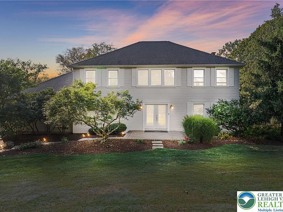 Discover this meticulously maintained 4-bedroom, 3.5-bath colonial tucked away on a quiet cul-de-sac in desirable Witchwood Hills Estates. This home combines a peaceful, natural setting with a commuter-friendly location, offering the best of both worlds. A dramatic 2.5-story foyer with an elegant staircase sets the tone, showcasing quality craftsmanship throughout. French doors open to a spacious formal living room/home office, while the formal dining room features classic raised-panel wainscoting. The eat-in kitchen offers ample cabinet space and flows seamlessly into the inviting family room, complete with custom-built-ins and a fireplace featuring a wood stove insert. Enjoy rare flexibility with TWO PRIMARY SUITES—one on the first floor and one upstairs—ideal for guests or multi-generational living. Upstairs, you’ll also find three very generous bedrooms, each with a walk-in closet, plus two full baths. The finished walkout basement expands your living space, providing room for a media area, gym, or entertaining space. Step outside to a three-level deck, above-ground pool, and fresh landscaping, perfect for gatherings or quiet relaxation. Recent updates from 2022 to 2025 include a new furnace, septic system, windows with custom casings, water heater, and water softener providing peace of mind for years to come. An oversized 2.5-car garage completes this move-in-ready must see home. Book your appointment today!