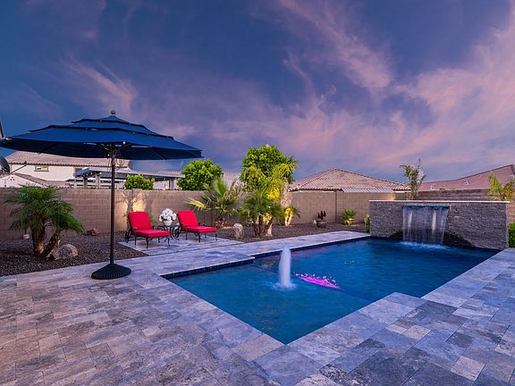This beautifully upgraded four-bedroom plus a spacious office single story home offers the perfect blend of luxury and comfort. Designed with high-end builder upgrades throughout, it features a waterfall kitchen island, a unique glass window backsplash, a large walk-in pantry, stainless steel appliances, Bosch refrigerator, gas stove, solar panels, upgraded tile flooring throughout, extended garage with epoxy flooring for a clean polished look, and water softener system.