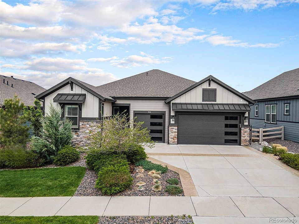 This model home is the definition of turn-key! You will be delighted by all of the high end designer finishes throughout, including extended hardwood floors, quartz counters, finished basement which would not be complete without a wet-bar! This popular floor plan boasts 4 bedrooms, 3.5 baths and a 3 car garage. As you walk in the front door you are greeted by wide-plank hardwood floors and wainscoting that lead into the great room with surround sound, custom built-ins, a wall of windows with plantation shutters, and tons of natural light that provides the perfect environment for entertaining. The kitchen is a chef's dream with an expansive kitchen island that overlooks the family room with fireplace, high end appliances, quartz & granite countertops, farmhouse sink, and a breakfast noon that opens to the covered patio and private backyard. The primary suite has coffered ceilings, floor to ceiling shower, wood beams, and a large closet. Towards the front of the home there is an ensuite with a walk-in closet, and full bathroom. There is also a stunning office, 1/2 bath, laundry room with sink and mud room on the main level. The basement is an entertainers dream with a spacious recreation room with an adjacent wet bar, game room and workout studio, along with two additional bedrooms and full bathroom.The front and backyard are completely landscaped with a new deck and hot tub in the back. The oversized garage is pristine with an epoxy floor. A must see if you are in the market for a ranch home! Prime location just steps from the local coffee shop, brewery, school and community pool. Minutes from numerous state parks and walking trails.