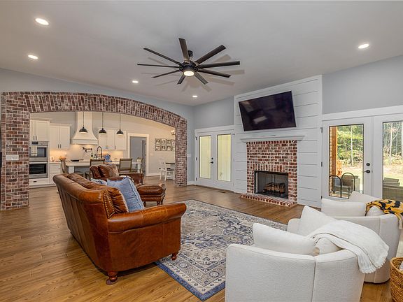 This newly constructed home offers the perfect blend of luxury, comfort, and space! With soaring 10-foot ceilings throughout, every room feels open and inviting. The main level features an open floor plan with a spacious kitchen and breakfast area that flows seamlessly into the living room, ideal for both everyday living and entertaining. The primary suite is a true retreat with abundant natural light, a spa-like bathroom complete with a soaking tub, walk-in tile shower, and oversized layout. The finished basement offers a versatile open living area, perfect for a kids’ playroom, home theater, or man cave in addition to multiple bedrooms and a full bathroom. Step outside to enjoy the covered front porch or gather with family and friends in the outdoor pavilion, complete with a fireplace and TV. Set on 4.5 private acres, this property provides plenty of room to relax, explore, and enjoy the beauty of nature.