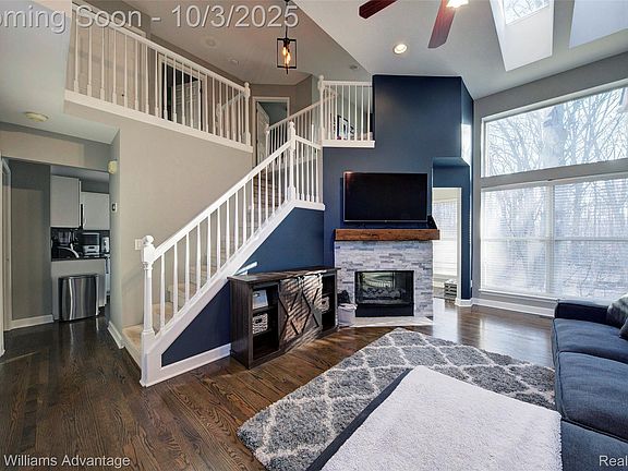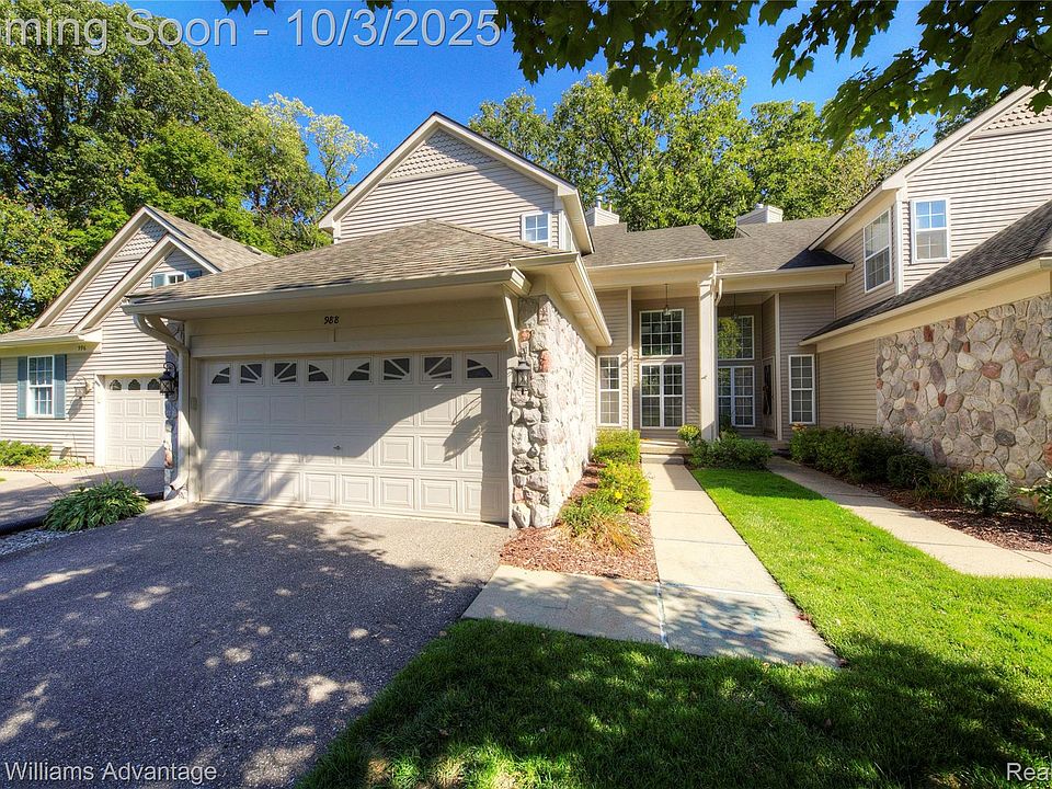 Welcome to 988 Calpernia; a stunning condo that perfectly blends modern comfort with natural beauty. Backing to a peaceful wooded setting, this home offers serene views from the large deck and expansive picture windows that flood the interior with natural light. Inside, you’ll love the open design featuring soaring cathedral ceilings and a cozy fireplace in both the great room and dining area, perfect for both relaxing evenings and entertaining. The spacious kitchen includes granite countertops, stainless steel appliances, and plenty of storage. Convenient first-floor laundry makes everyday living a breeze. The large primary suite includes a walk-in closet and private bath, creating a true retreat. Downstairs, the finished basement provides additional living space with an egress window and an additional bedroom ideal for guests or a home office. Other updates include updated half bath 2019, AC unit 2021, hardwood flooring 2020, upstairs flooring and new light fixtures throughout home 2021. This condo has it all; style, space, and a wooded backdrop that feels like a private escape while still being close to everything you need.