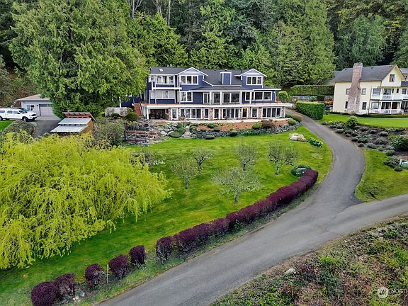 Experience coastal luxury with breathtaking views of the islands & bay! Vaulted ceilings & skylights fill this home with abundant natural light. Six fireplaces add warmth & elegance. Recently updated & beautifully appointed, this serene retreat has direct access to the Interurban Trail & five private beaches, & just four minutes from Fairhaven. The open floorplan effortlessly connects indoor & outdoor spaces, perfect for entertaining or relaxing. Upstairs, find a spacious executive office & a luxurious primary suite. Downstairs, there's a versatile suite/ADU with a 2nd kitchen & patio offering stunning views. This home also features a wine cellar, exercise space, sauna, & steam room—everything you need for ultimate comfort and relaxation.
