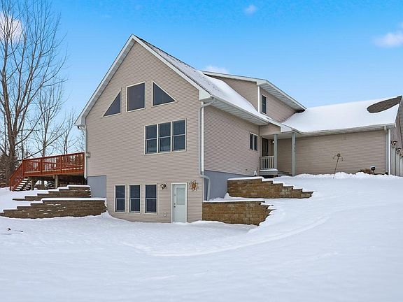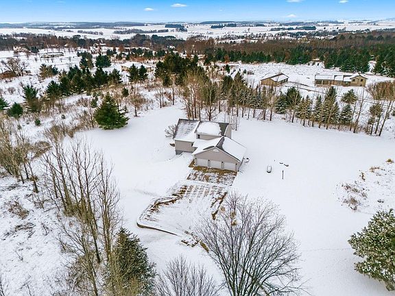 This custom-built quality home is nestled on over six acres of stunning, private land and showcases an open floor plan. The expansive deck off the great room invites you to relax and enjoy the serene surroundings. Numerous upgrades enhance the property, including elegant hickory cabinets, Andersen tilt windows, and six-panel doors throughout. The vaulted ceilings, hard surface counters, and abundant storage add to the home's appeal.