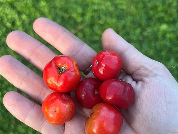 Level fenced rear yardCherry treeTile floorsRear screened back patio