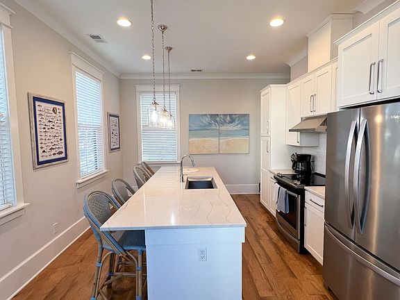 Lease period of 1-3 months only. The home is available through May 15, 2025. Great location just across the bridge from Sullivan's Island, an easy walk to Pitt Street Bridge and short drive to downtown Charleston! This fully furnished 1 bedroom, 1.5 bath townhouse is offered for short term leases (30 day minimum) with utilities included. The unit is multi-level which provides a spacious feel. The first floor is comprised of an updated kitchen with a large island for entertaining, the living room and half bath. The second floor includes a loft, primary bedroom with walk in closet and bathroom with a dual vanity. The enclosed garage is setup as additional heating/cooled living space to be used as a bonus room, office or guest space. There is one designated parking space in the driveway and additional on-street parking available. Minimum 30 day stay (1-3 month lease)