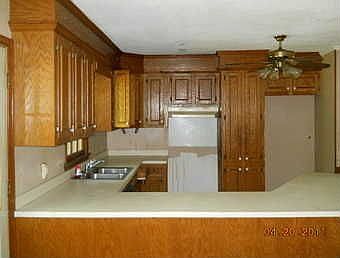 Exterior Features:Exterior is brick veneer. Converted garage is fiberboard siding with rotten areas towards the bottom. Porch/soffit/eaves intact. Roof is asphalt shingle but apparently leaks as it is tarped. Foundation intact. Interior Features:Flooring is combo of carpet and vinyl. All rooms intact. Overall fair to good condition.