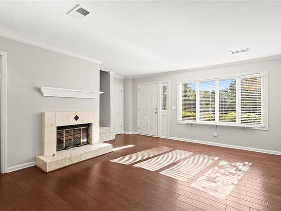Welcome to this beautifully updated end-unit townhome in the heart of Roswell! Designed for comfort and functionality, this home features a smart roommate-style layout with two oversized bedrooms—each with its own private en-suite bath and generous walk-in closet. Move-in ready and freshly updated, the home feels bright, modern, and inviting from the moment you step inside. The main level boasts new engineered hardwood flooring, a fully renovated kitchen with custom cabinetry, granite countertops, and stainless steel appliances. Enjoy an open-concept living and dining area with a cozy fireplace and a charming coffee nook—perfect for relaxing or entertaining guests. A convenient powder room and in-unit laundry complete the main level. Step outside to your private covered patio overlooking a large greenspace—ideal for games, pets, or simply enjoying the outdoors. The home also offers a 2-car covered carport for easy parking. Located in the sought-after Holcombs Crossing community—FHA-approved, pet-friendly, and offering great amenities including a pool, pet stations, and sidewalks—this is low-maintenance living at its finest. All just minutes from Holcomb Bridge Road and GA-400 for easy access to shopping, dining, and everything Roswell has to offer. Don’t miss this one!