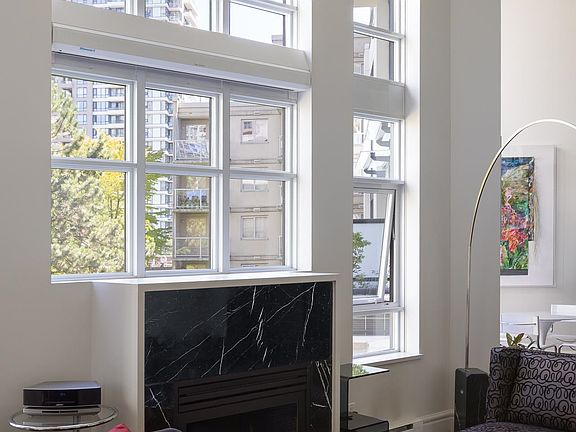 Architectural soul x gallery glam. A sophisticated 2055sf concrete loft harmonizing form, function, and artful living. A curtain of 17-foot-high windows stretches 43 linear feet overlooking the courtyard, illuminating the sculptural steel staircase and glass balustrades with exceptional handrail detail that define this one-of-a-kind, developer-crafted home. The dramatic kitchen inspires intimate dinners or large gatherings. These walls demand art, yet offer utility of A/C + multifunctional double ensuite bedrooms and offices. 51-home Tribeca Lofts recently completed exterior maintenance + offers building EV. 2 side-by-side parking, private storage room + locker + short walk to the seawallv+ Yaletown’s elevated cuisine + shopping. Escape the world – or host it. Open Sun 2-4pm.
