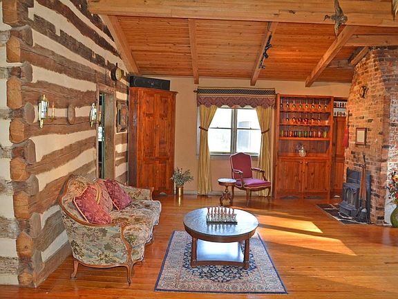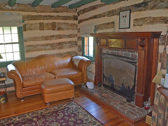 CHARM OF YESTERYEAR, LUXURIES OF TODAY: This fully restored historic chestnut-log home built in the 1770's has 4 bedrooms and 2 baths. The property is well maintained (new septic system, new plumbing, new H-VAC systems), and has endless character. It boasts high ceilings in the grand room, wood floors, Italian-marble countertops, and a custom built front door. This home offers DSL high-speed internet through CenturyLink. Included is a two-story Carriage House that has a guest room with a walk-in closet, 3/4 bath, and an upstairs spacious studio apartment, or enjoy the rustic log guest cabin with a loft; making this property ideal for entertaining or an Air BNB. The Carriage House includes an attached garage and office space. There is a storage shed, a 40x24 two-story barn with a concrete floor and lean-to that can handle your equipment or can used for celebrations. Amongst the beautifully landscaped 19.35 acres, you will find a small pond and a spring-fed stream, a greenhouse/art studio, an outdoor deck with grill and seating, and two porches. This is your one stop retreat spot.