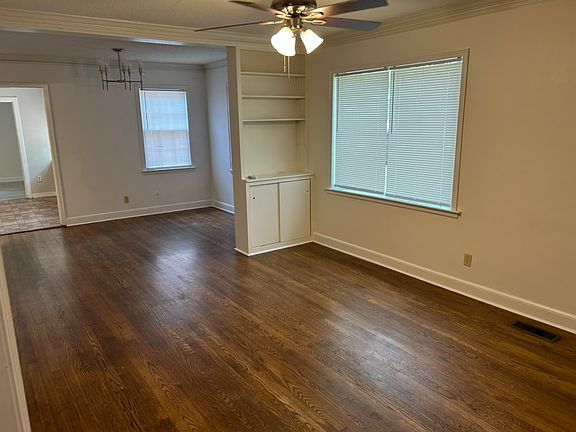 The house has 3 bedrooms, 1 bath, living room and dining room. It also has a breakfast area and an additional den. Has central heat and air. The inside is freshly painted. It has an enclosed garage with remote control. It has a large fenced in backyard. Included are Refrigerator, stove, and dishwasher. One year contract that spells out all the details.