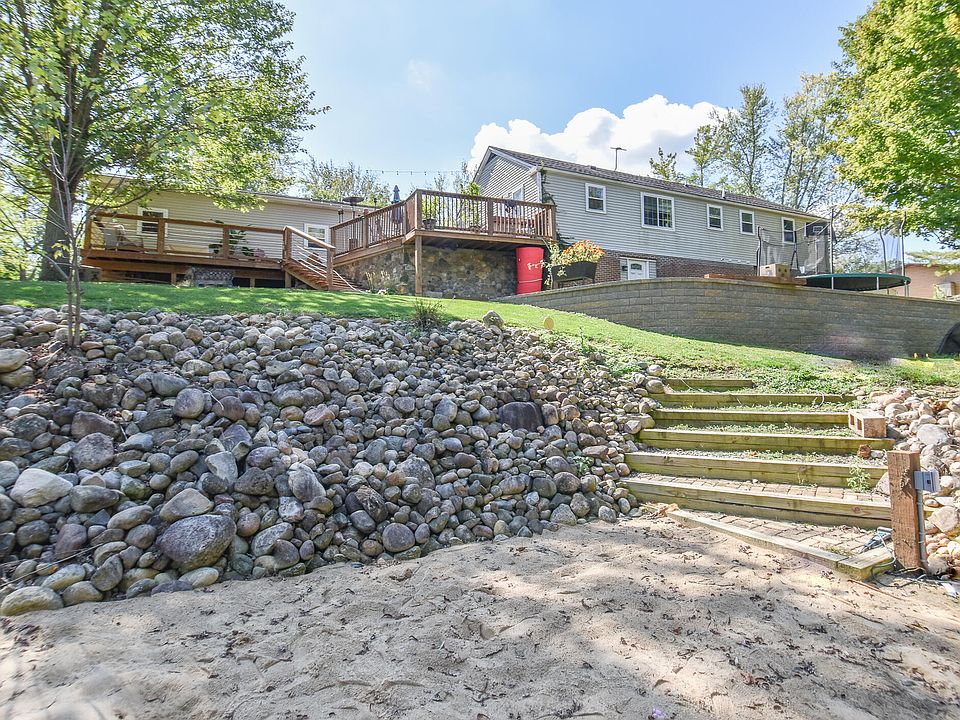 Beautifully updated 3 bedroom, 2.5 bath home offering both channel frontage to Marble Lake and your very own private pond. Enjoy the best of lake living with plenty of space to relax and entertain. This property includes two outbuildings: a storage shed and a 2-car garage with a large, heated shop, half of which has been finished into a versatile living space perfect for hobbies, gatherings, or extra storage. The fully finished walkout basement expands your living area with a spacious recreation room, laundry room, common area, storage room, half bath, and an office/craft room. Upstairs, the primary suite offers a private bath with a luxurious dual-head tiled shower. The home's galley kitchen features custom Amish-built cabinetry, combining timeless craftsmanship with modern functionality. Additional highlights include a generous yard, newly updated deck, and beautifully refreshed backyard landscaping—creating the perfect setting for outdoor enjoyment. This company makes no warranty or representations about the contents of this data. It is the responsibility of the parties looking at the property to satisfy themselves as to accuracy of this information. Taxes were obtained from the local assessor and the taxes could change for the buyer after a closed transactio