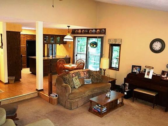 This solitary residence located w/in minutes of Minocqua's amenities on 3.87 beautifully landscaped, wooded acres of privacy w/a pond & abuts the Bearskin Trail for hiking, biking & snowmobiling. The home's exterior has European charm w/cedar siding, stonework & decorative enhanced trim & has been well maintained. 3 car att garage w/well planned entry to Mud/Laundry Rm w/BA. It is quality built w/5BR & 4BA, spacious open concept w/well appointed kitchen(granite tops), breakfast nook w/patio doors to sundeck, sunken living room w/lg Bay window & views of gorgeous yard, pond & wildlife. There is a formal DR, front entry, Master BR, 2 more BRs & full BA on main. Upper level has 2 BRs w/walk in closets & full BA. The lower level has a walk out that hosts a family room, BA, workshop/storage, wood room, & root cellar. A storage shelter & shed are additional bonuses on the attractive grounds. Priced to sell so don't miss this fabulous opportunity to make this your family home.