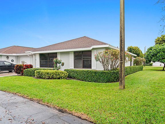 Inviting Villa in prime location, nestled in the heart of Boynton Beach, and ideally located just a short walk to the pool and clubhouse! This spacious 2-bed, 2-bath villa offers the perfect opportunity to customize your dream home! Just minutes away from the beach, shopping, and restaurants, this corner unit offers windows all around bringing in lots of light and a large one car garage. It features ample living space with large bedrooms, a separate walk-in closet, coat closet and an oversized pantry in the kitchen. This home has been recently repainted on the exterior, along with a new garage door and opener. Maintenance fees also include the roof, water, sewer, cable, exterior insurance and lawn care. Priced to sell, this villa is ready for your personal touch! Located in a quiet 55+ community where residents can enjoy a range of amenities, including Bocce, a beautiful Pool and a Clubhouse which hosts various activities and events throughout the year.