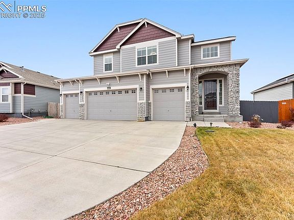 Welcome to the perfect blend of Colorado comfort and luxury living! Nestled in Peyton’s highly desirable Paint Brush Hills neighborhood, this stunning home backs to open space and offers breathtaking Pikes Peak views from the expansive covered deck. Inside, you’ll find 5 bedrooms, 4 bathrooms, an office, and a loft. This layout is designed for both everyday living and entertaining. The open-concept main level features a gourmet kitchen with granite countertops, 42” cabinets, and a spacious dining area that flows seamlessly into the great room and office. Downstairs, the finished walk-out basement is a showstopper, complete with a large bedroom, bathroom, family room, wet bar, and plenty of storage. With its separate entrance, this space is ideal for a mother-in-law suite, guest quarters, or potential rental opportunity. Upstairs, the versatile loft makes a great homework zone, play area, or additional lounge space. Step outside to enjoy the oversized, low-maintenance landscaped yard, featuring a covered deck and concrete patio perfect for gatherings. Car enthusiasts and hobbyists will love the rare 4-car attached garage and 10x12 backyard shed, offering room for all your toys and tools. The location is unbeatable, and just a short walk to Bennett Ranch Elementary and Falcon Middle School. With its thoughtful design, modern upgrades, and unbeatable views, this home truly captures the essence of Colorado living. Don’t miss your chance to make it yours!