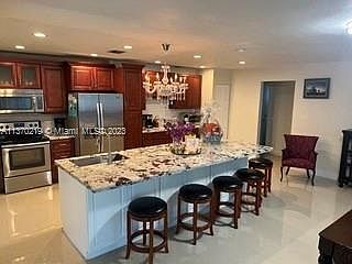 Beautiful move in ready home in the Falls area. Great neighborhood on a low traffic street with fantastic landscaping and beautiful Koi Pond for your afternoon retreat. Plenty of space for a pool. This home has been completely remodeled and has an amazing open floorplan kitchen which is great for family gatherings. This home offers a large room with bathroom and wet bar that can be separated for a in laws quarters. This home is equipped with a Generator system that can run the entire house with a large buried propane tank and its equipped with Impact Windows throughout, ready for hurricane season.