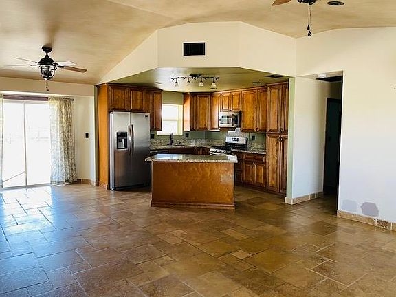 There's nothing quite like a desert sunset! This cozy 3 bedroom 2 bath situated on approximately 2.5 acres of land has a view of the mountains all around where you can watch the sun bring out nature's glorious colors. Fully fenced and cross fenced property. Open upgraded kitchen, stainless steel appliances, granite countertops, beautiful rock fireplace and ceiling fans throughout! You'll enjoy the open floor plan, great for entertaining.