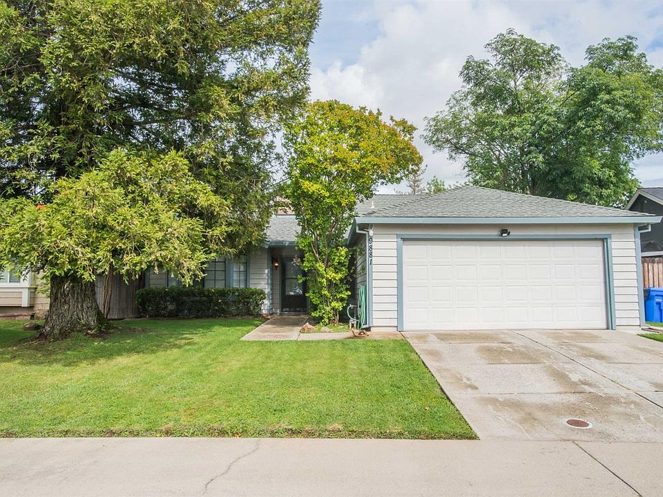 Tucked away in a quiet Elk Grove neighborhood this delightful single story home is ready for you to move into. It is located in the heart of Elk Grove, within walking distance to Old Town, schools & Elk Grove Regional Park. Upon entering you are greeted by vaulted ceilings that adorn the living and dining areas creating an open and airy atmosphere perfect for both relaxation and entertainment. This lovely home also features a separate family room with brick fireplace, spacious kitchen has been updated in past 2 years with quartz countertops, stainless steel appliances including double ovens, and breakfast area that looks out to nice backyard deck and good sized backyard. Master bathroom has been tastefully updated also. Conveniently located in Elk Grove, this home offers easy access to parks, schools, shopping, and dining. Don't miss the opportunity to own this home with all the amenities for a comfortable and enjoyable lifestyle.